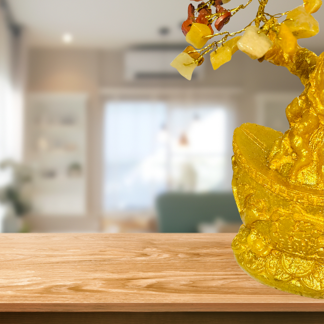 Bring harmony, prosperity, and chakra energy into your space with the Seven Chakra Crystal Tree on a golden base.